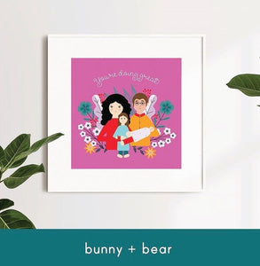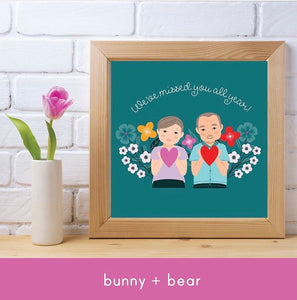 Box of 6 x greetings cards from bunny + bear ‘Made with love’ collection
